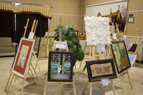در این نمایشگاه ۳۶ اثر از چهار هنرمند شیما حسن خانی ، نادیا حسینعلی زاده ، سلما محمد زاده و محسن خلیل نژاد که در زمینه نقاشی و معرق کاری بوده است به معرض دید علاقمندان گذاشته شد.