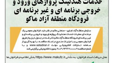 آگهی فراخوان خدمات هندلینگ پروازهای ورود و خروجی برنامه ای و غیر برنامه ای فرودگاه منطقه آزاد ماکو سازمان منطقه…